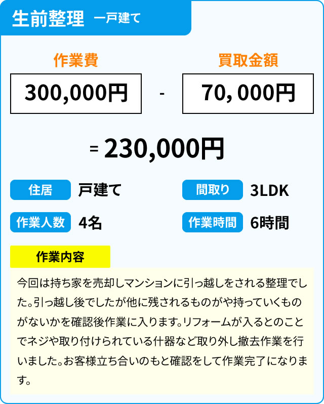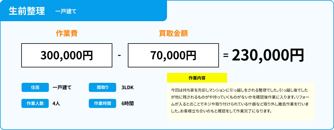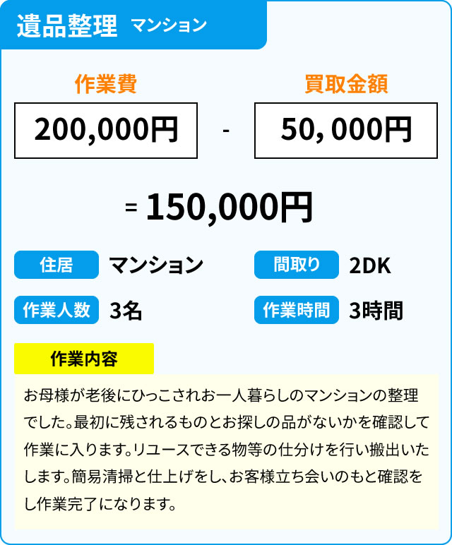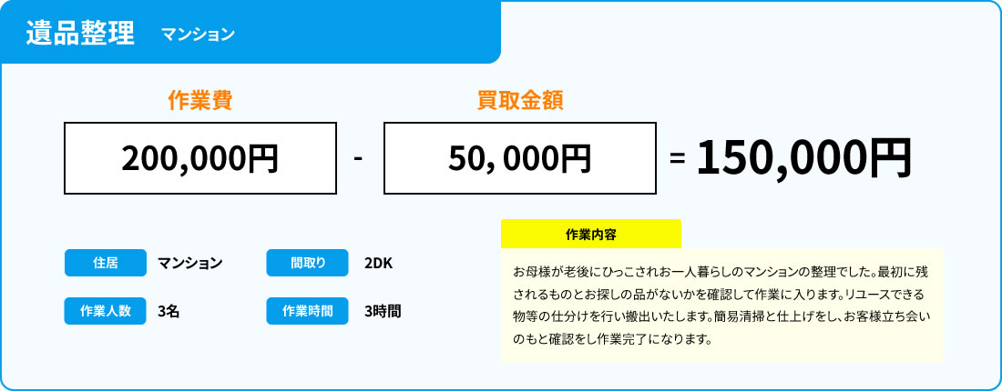 不用品のなかで、買取ができるものは買取額分を作業費用に充てていただくことで、ご負担額を減らすこともできます。